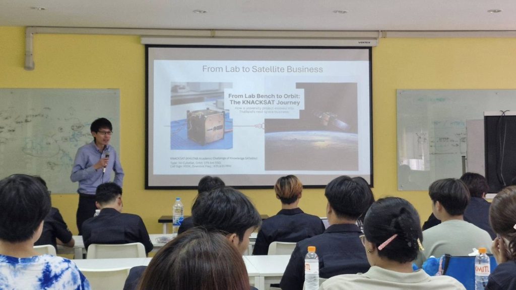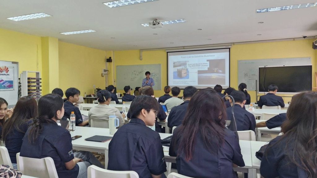 2 กุมภาพันธ์ 2569 คุณอภิวัฒน์ จิรวัฒนผล ตำแหน่ง CEO&Founder ของ NBSpace Co.,Ltd ให้เกียรติมาบรรยายและแลกเปลี่ยนประสบการณ์ ในวิชา Space and GIS for Daily Life ให้กับนักศึกษาชั้นปีที่ 1 หลักสูตรวิศวกรรมอวกาศและภูมิสารสนเทศ สจล.ที่ห้อง T-312 อาคาร EN02-A ภาควิชาวิศวกรรมโทรคมนาคม คณะวิศวกรรมศาสตร์ สจล. ซึ่งได้รับความสนใจและเป็นแรงบันดาลใจให้กับนักศึกษาทุกคนเป็นอย่างมาก